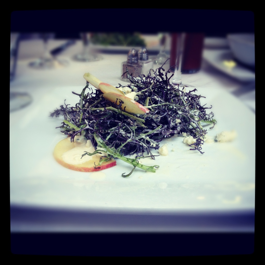 We sat down and immediately ordered some creole Bloody Marys. I began with the pine nut crusted goat cheese over a bed of baby lettuce. My sister had the Gulf Coast Apple Salad with blue cheese and my mother, the asparagus and watercress bisque. My mother must have really enjoyed her soup, because it was gone before I got to try it. The scarlet frill gave my sister’s apple salad an interesting appearance and I really enjoyed my goat cheese salad.