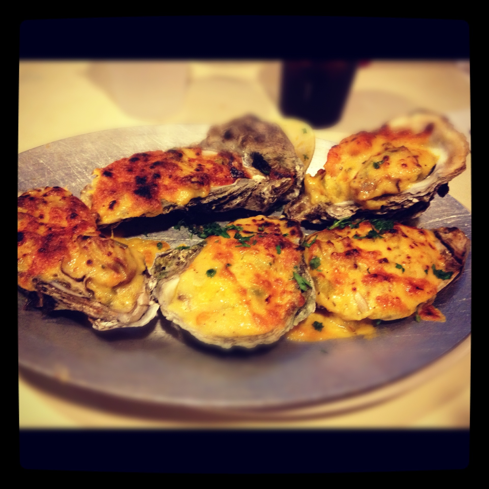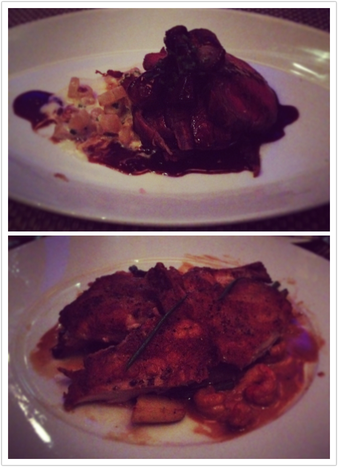 We were conflicted over what to order, but our waiter was knowledgeable about the menu and very helpful. We began with the Pan Roasted Sweet Breads served over creamy black truffle grits, Creamy Butternut Squash Soup served with generous lumps of blue crab and crème fraiche, and a Roasted Beet Salad served with a goat cheese mousse (I know, I have a thing for beets lately). The Sweet Breads could have easily been a meal themselves, but were worth every bite. For our entrees, we ordered the Roasted Beef Tenderloin wrapped in Bacon and served with creamy salsify, and Crispy Baby French Chicken with a crawfish in a lobster sauce served with fingerling potatoes. Pan-fried and served with two tiny wings and two tiny chicken breasts, each was beautifully battered and served over the lobster sauce. It was a cold winter’s night so both entrees hit the spot! For those of you who never tried or even heard of salsify, it is a root vegetable with an oyster like flavor, definitely an interesting vegetable.